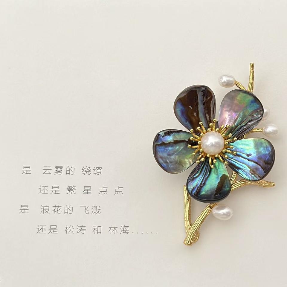Broche de niche en nacre d'ormeau et perle d'eau douce, élégante et raffinée, accessoire de mode pour poitrine, vente en gros de broches fines