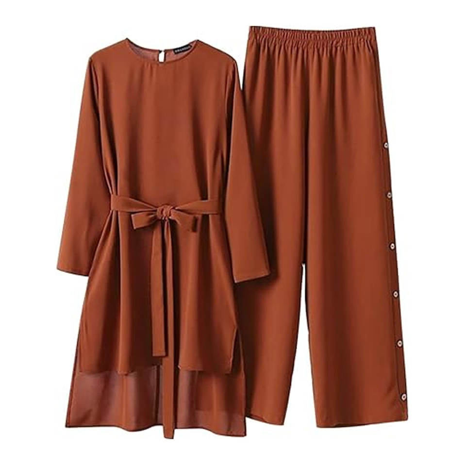 Abaya Dress Women Muslim 2 Piece Set Long Sleeve Loose Fit Top and Pants Modest Dubai Islamic Clothing Matching Outfit Set