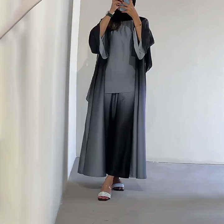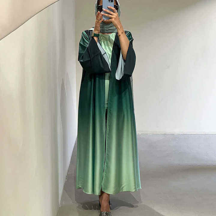 Custom Islamic Ombre Gradient Satin Abaya Set with Inner Dress Traditional Muslim Clothing Modest Elegant Fashion for Women