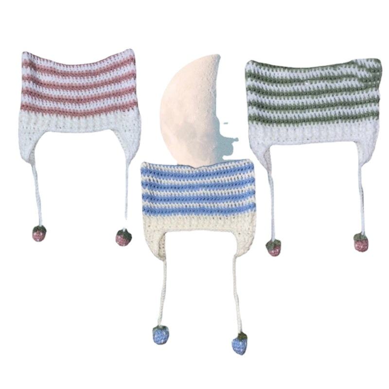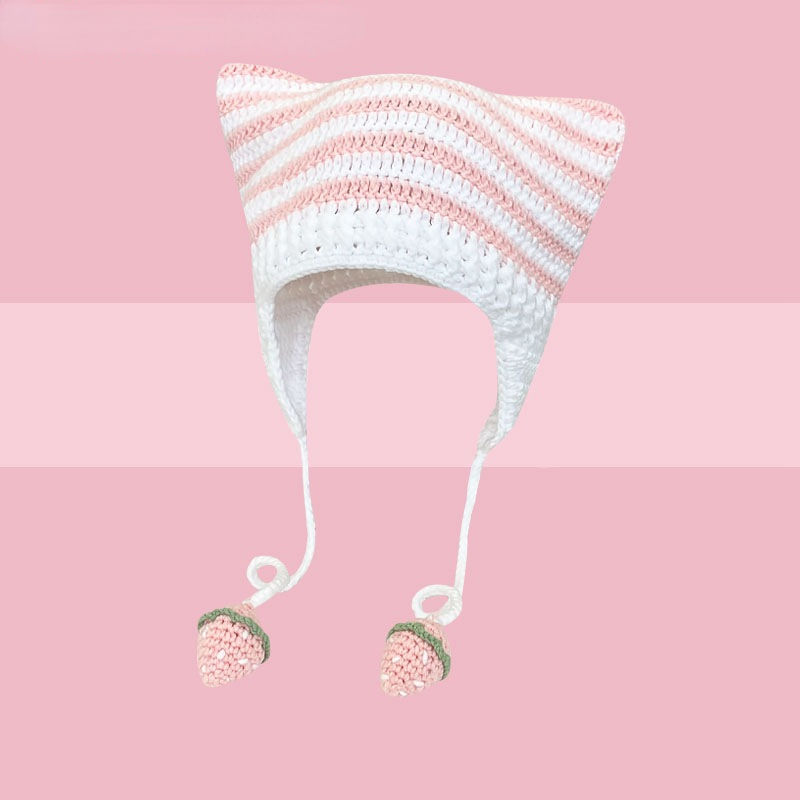 Abby Style 2023 nouveau tricoté rayures chapeau femme fait à la main Crochet chat oreille bonnet chapeau Halloween cadeau hiver chaud diable cornes casquette