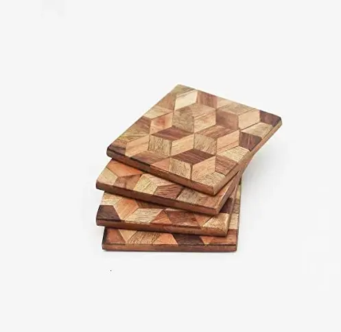 Abdul Rehman Enterprises' Favourite Classic Top Design Laser Print Wood Coasters Personalized Square Pad for Home Bar Table Mat