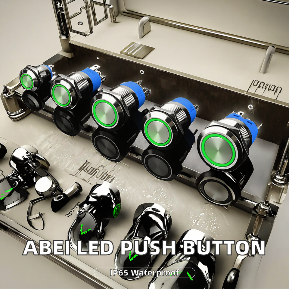 Abei Bouton-poussoir métallique momentané 22mm LED en cuivre, mini ultra-mince, étanche IP65, avec anneau lumineux à tête dôme verte, 3A 250V 1NO1NC, pour usage domestique