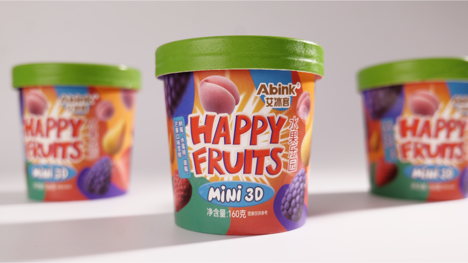Abink New Design Happy Fruits Soft Ice Cream Four Fruity Flavors Chocolate Strawberry Sugar Additives 150g Ready Eat Bag