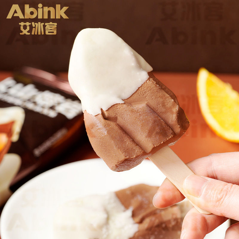 Chocolat à la lave volcanique Abink & Glace molle au maïs Milka. Sachets de crème glacée originaux prêts à consommer