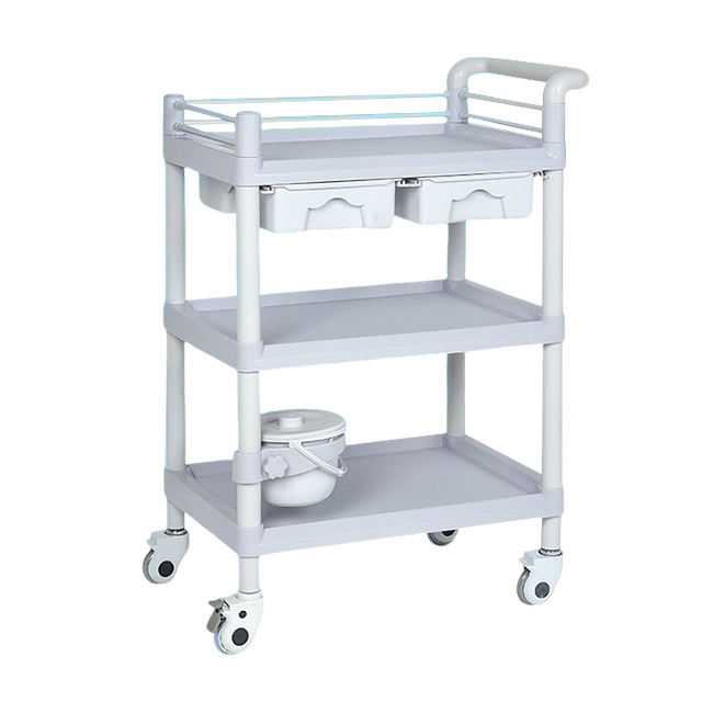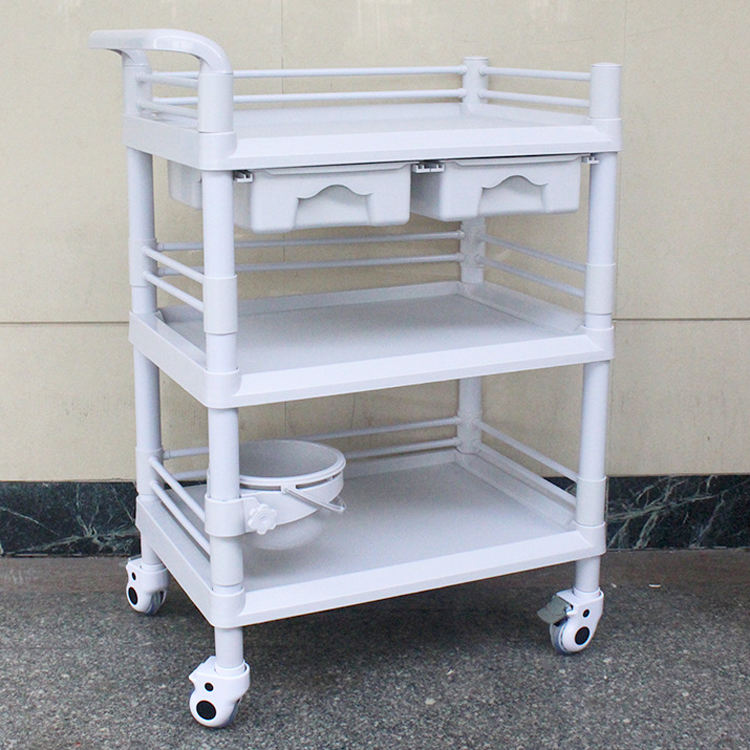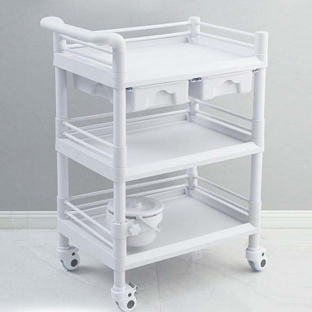 Chariot médical ABS à 3 niveaux, chariot multifonctionnel à 3 couches en ABS, chariot médical pour pansements en ABS