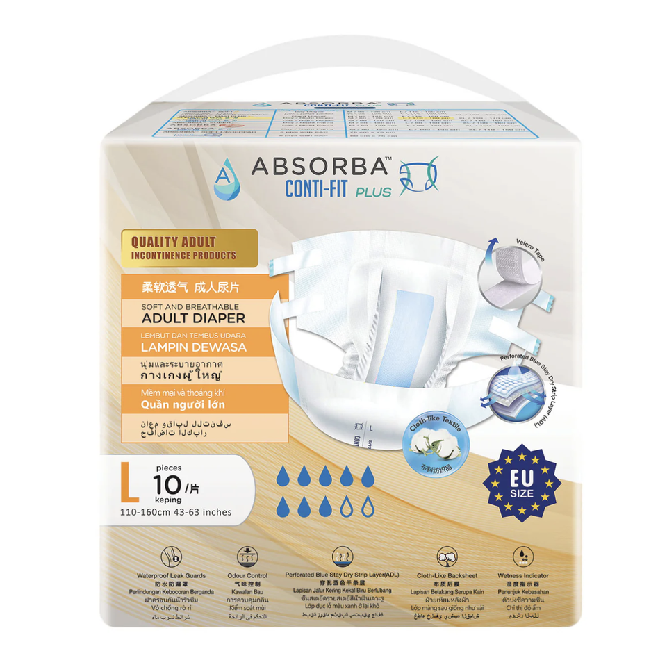 Couches pour adultes Absorba Conti-Fit Plus, 10 pièces par paquet, taille L