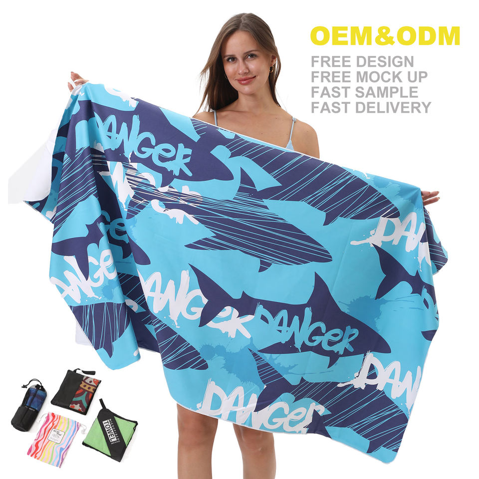 Serviette de plage absorbante en microfibre à séchage rapide avec impression personnalisée sur une face Vente en gros Logo personnalisé Serviette de plage sans sable avec sac en filet