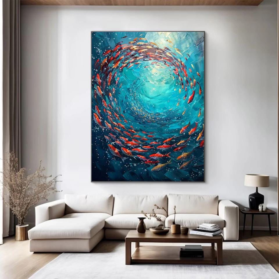 Peinture abstraite décorative de grande taille, peinture de paysage marin, peinture artistique sur toile, décoration murale, peinture originale pour la maison et la galerie