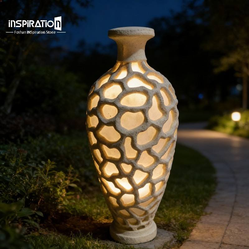 Lampe LED Abstraite Effet Pierre pour Jardin de Cottage, Lanterne Lumineuse de Style Ancien pour Aménagement Paysager, Ambiance Terrasse