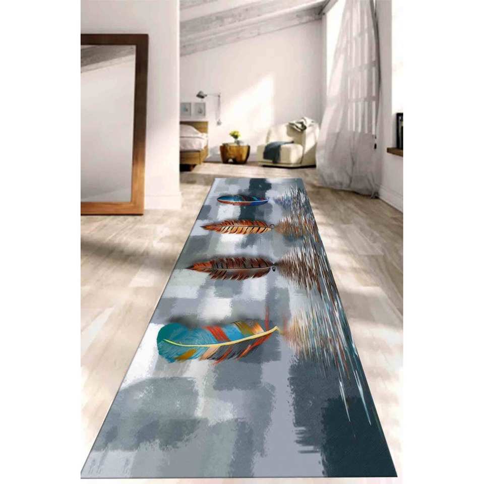 Tapis à motifs plumes abstraits : Tapis imprimé moderne antidérapant, tapis fin non tissé