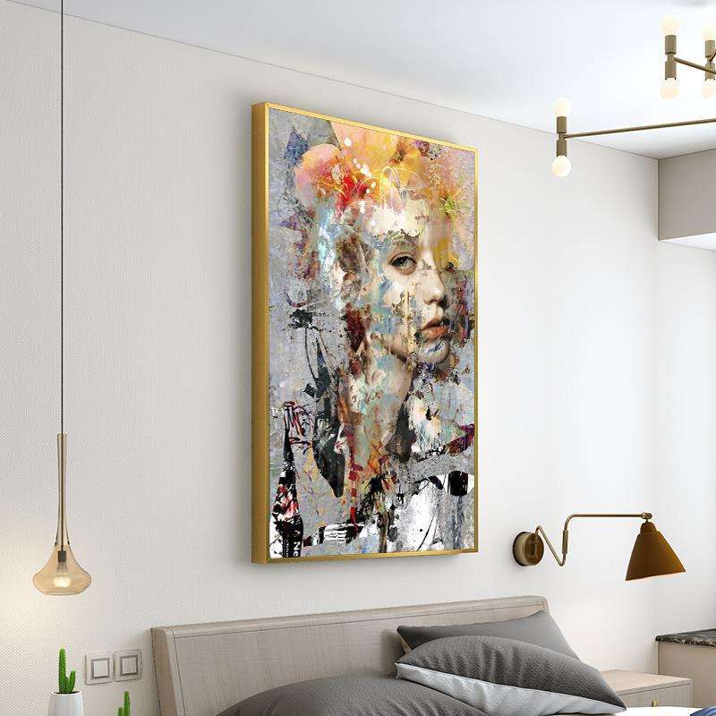Tableau mural abstrait sur toile : Portrait féminin, Art moderne, Peinture de femme, Style graffiti coloré, Impression de figure pour décoration de salon