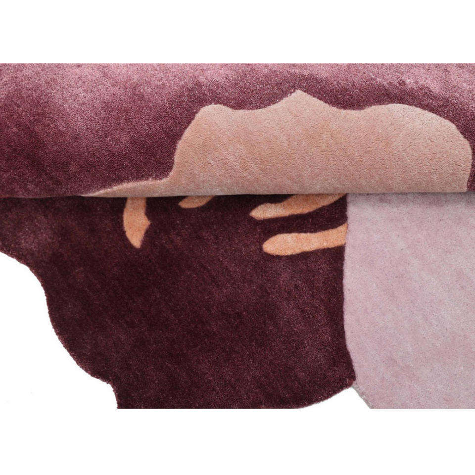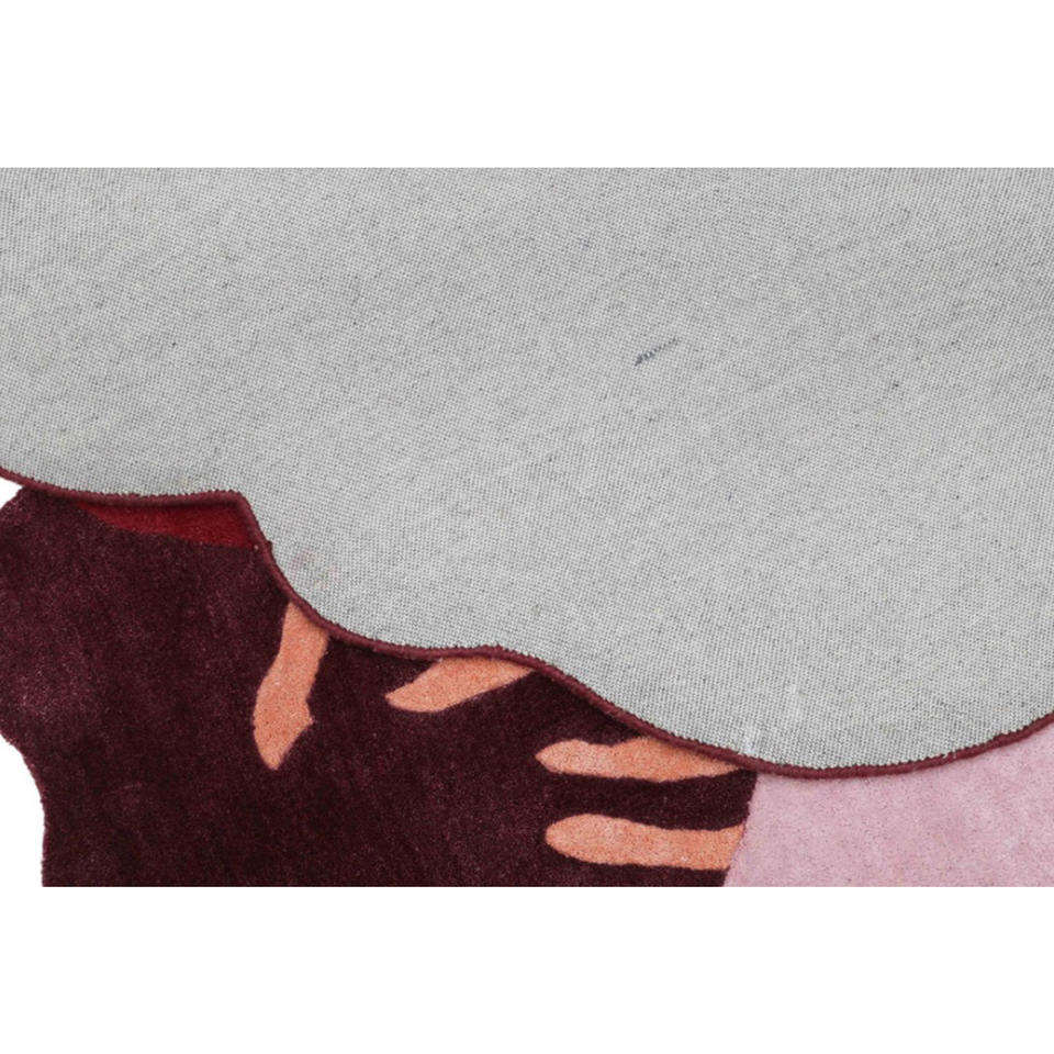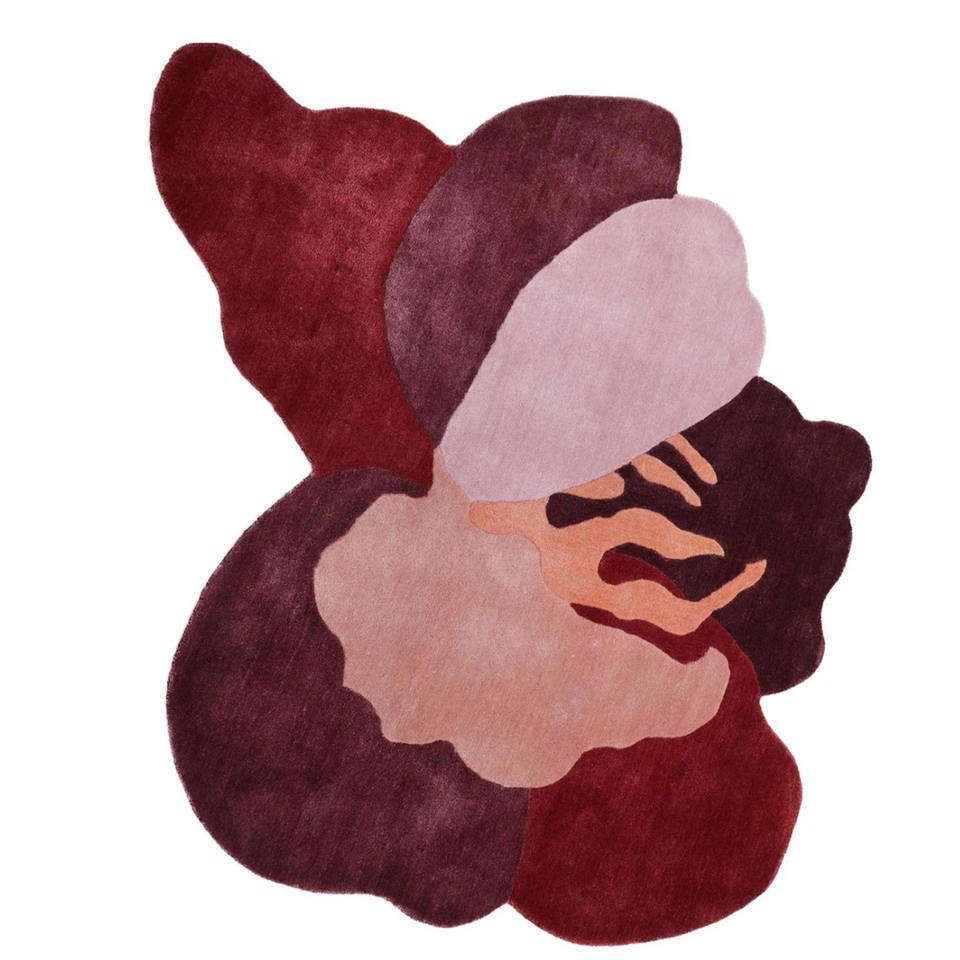 Tapis en laine fait main à motif floral abstrait, rouge et rose, tapis d'art moderne, cadeau de Noël, Nouvel An