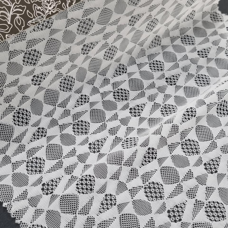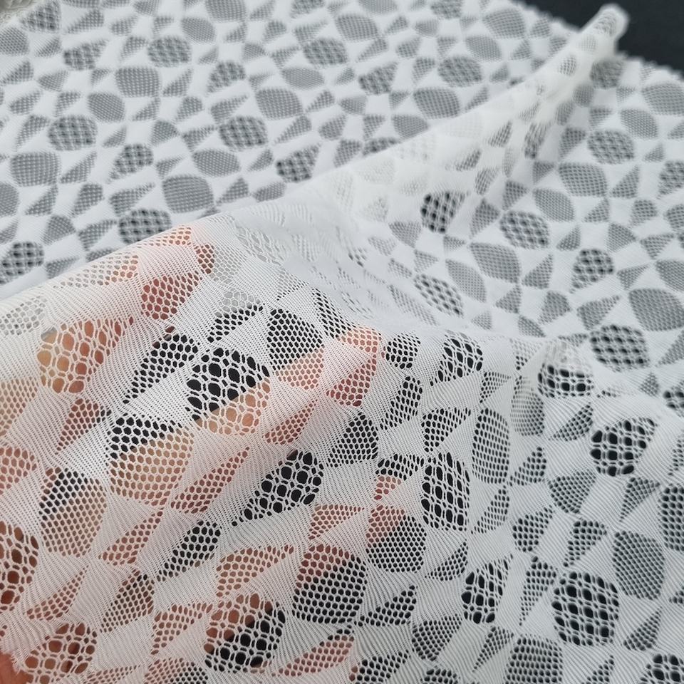 Tissu en dentelle extensible géométrique abstrait Spandex/Nylon 147cm Léger Tricoté chaîne Couleurs personnalisées Designs sur mesure acceptés Séoul