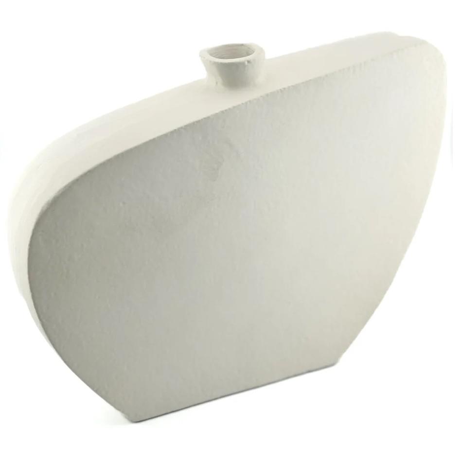 Vase abstrait géométrique blanc non verni, grand vase à bourgeons en forme de pierre plate, ornement de bureau créatif pour salon moderne