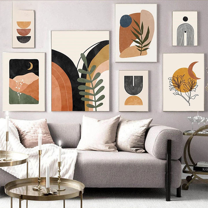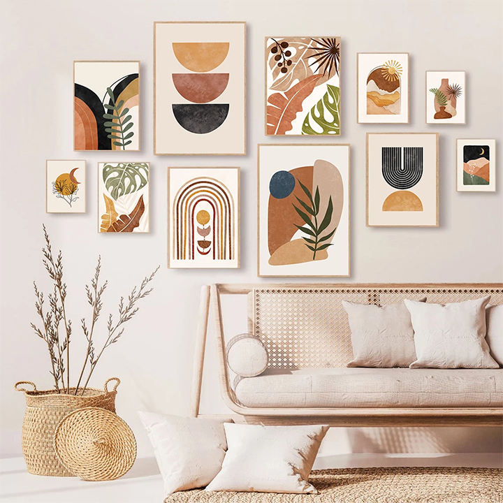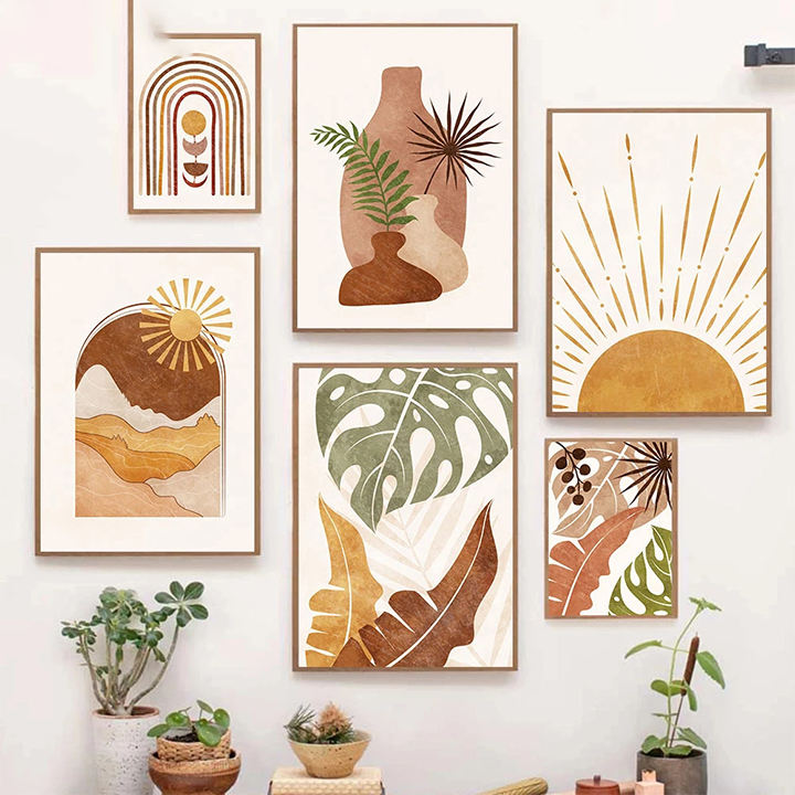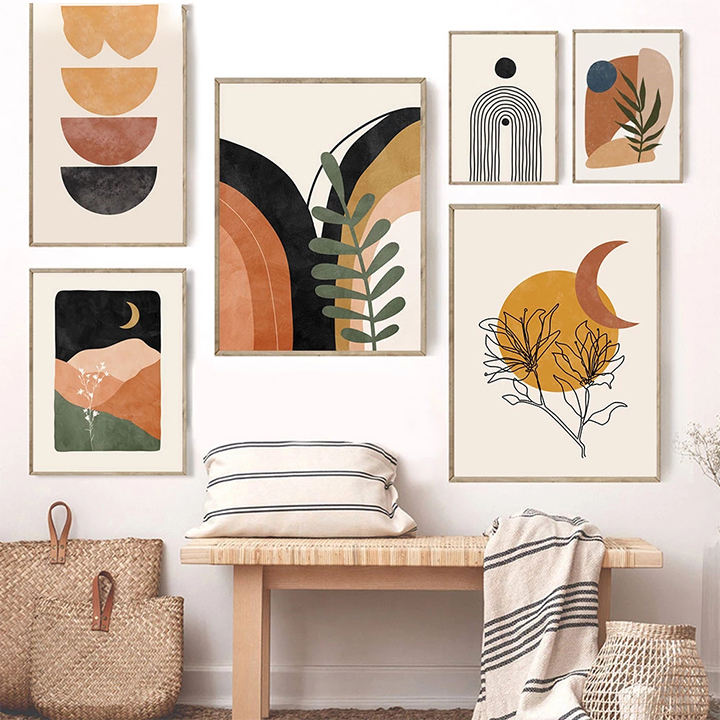Géométrie abstraite toile peinture Boho Art imprime Monstera Palm mur photos soleil lune mur affiche milieu du siècle décor à la maison