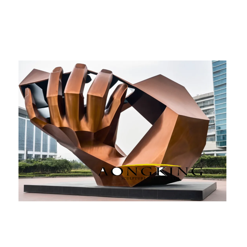 Statue abstraite géante en métal artisanal à deux mains en bronze moulé statue de mains en prière