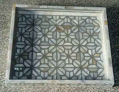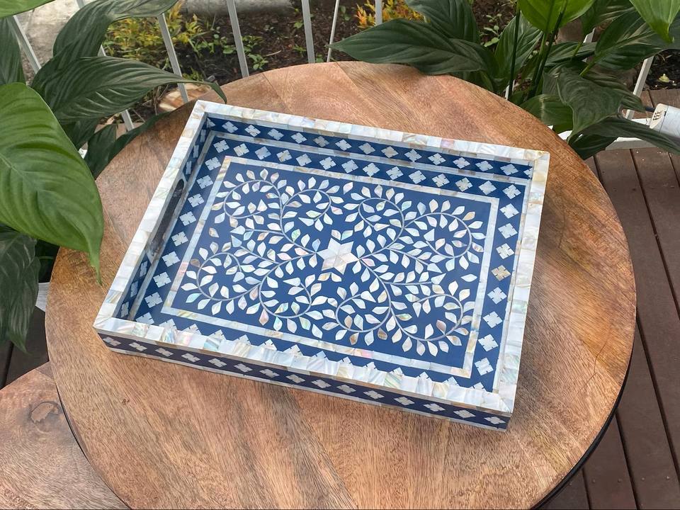 Plateau de service en nacre gris abstrait fait à la main plateau de nourriture rectangulaire en métal de conception géométrique de meilleure qualité pour un usage domestique