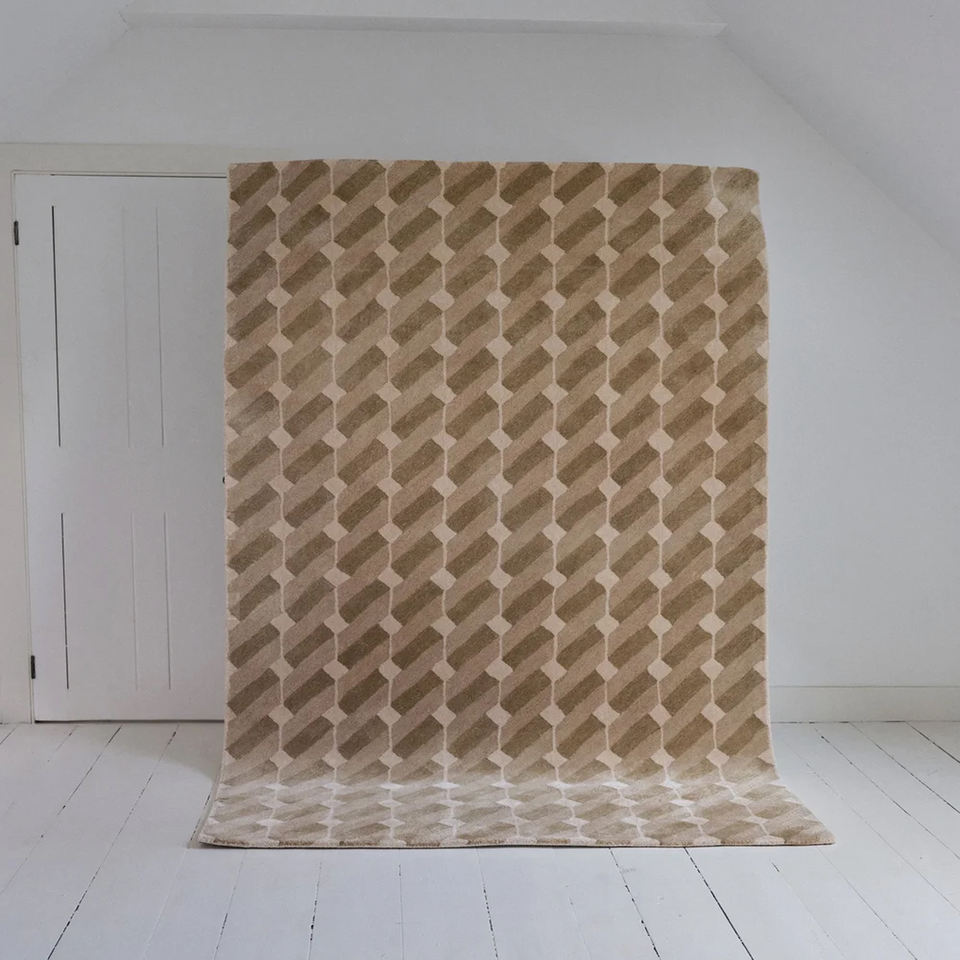 Tapis en laine à motif hexagonal abstrait | Tapis géométrique contemporain à tons neutres, tufté à la main, pour projets de décoration intérieure design