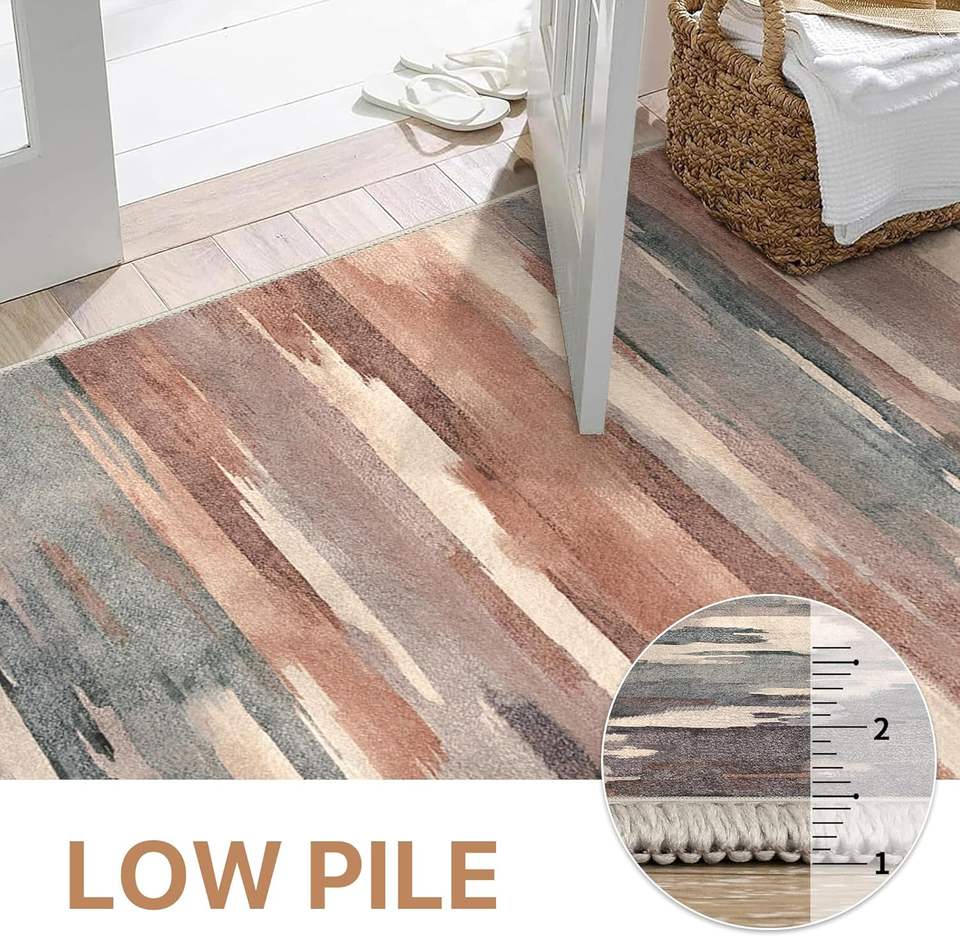 Tapis d'intérieur abstraits modernes lavables 8x10 antidérapants doux pour salon grande taille chambre à coucher décoration intérieure brun ocre