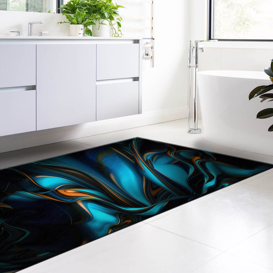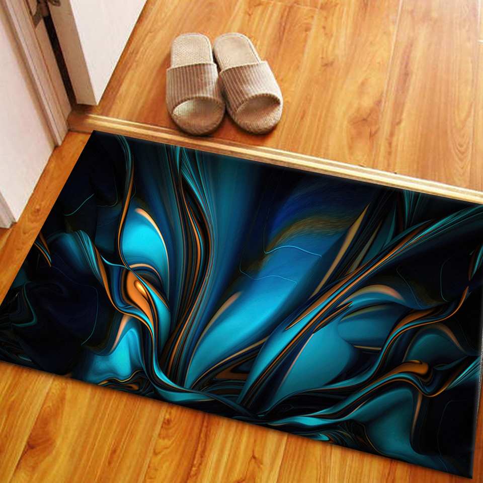 Tapis imprimé abstrait, lavable en machine, décoration moderne pour la maison, bleu et orange, tapis en chenille