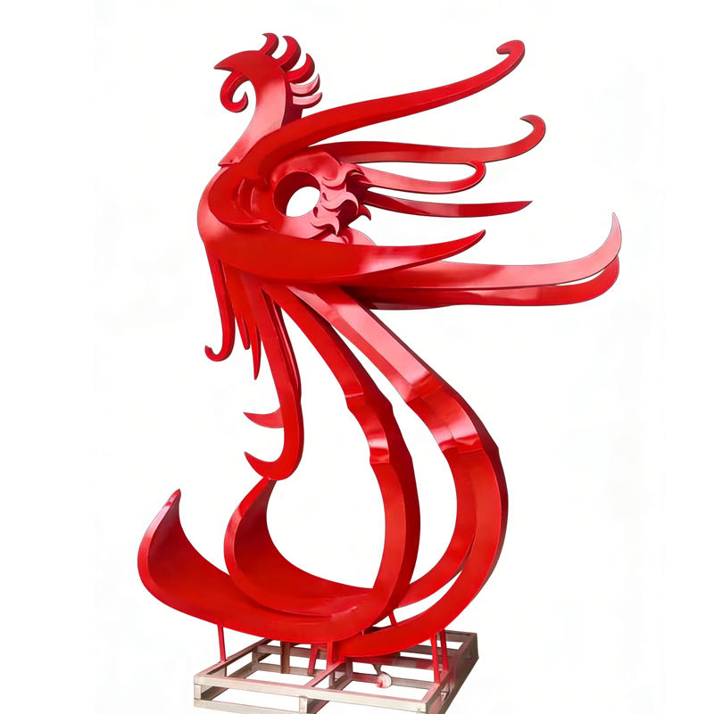 Sculpture d'extérieur réaliste abstraite de grande taille en fibre de verre et résine, statue de phénix rouge, de sirène ou de dragon