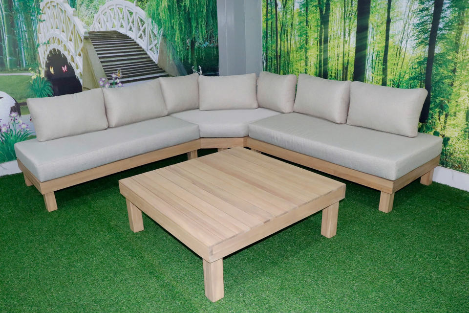 Ensemble de canapés d'angle en bois massif Acacia pour jardin, patio, complexe hôtelier et hôtellerie, sièges de salon d'extérieur