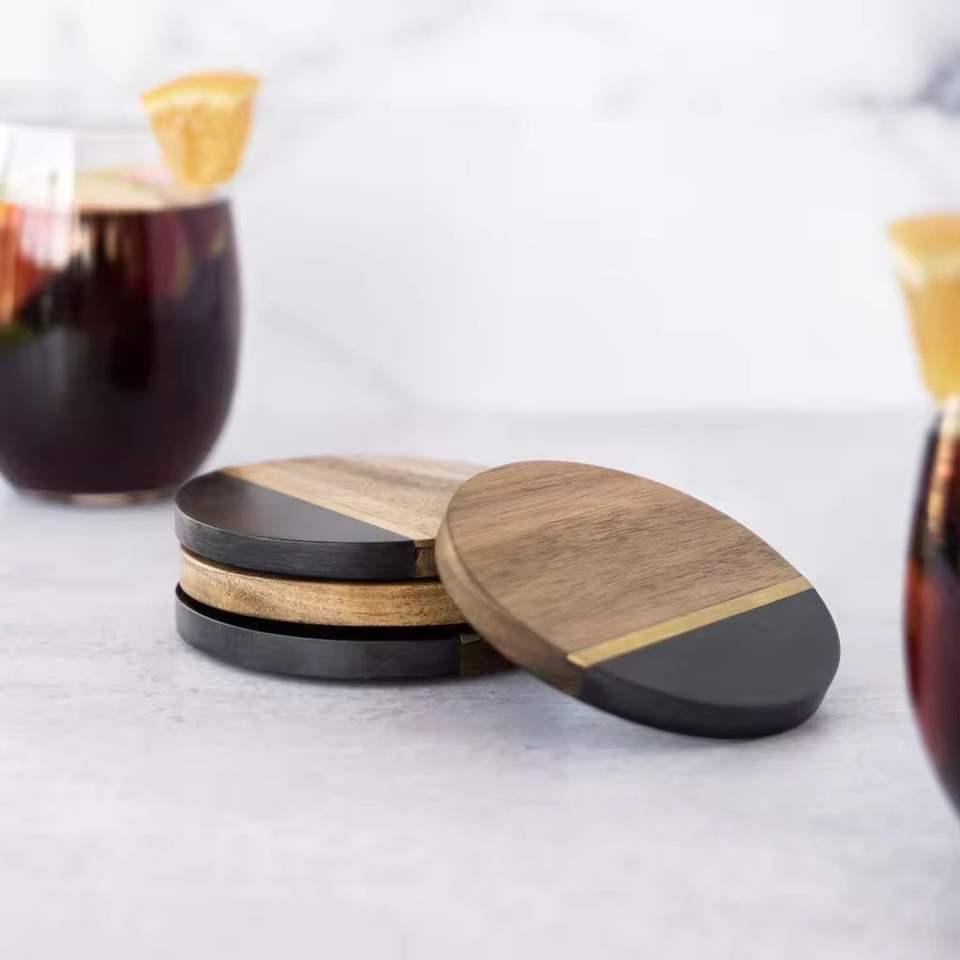 Ardoise d'acacia avec incrustation en laiton Sous-verre en bois Ensemble de 4 pièces avec incrustation en laiton Sous-verre pour tasse à thé et café