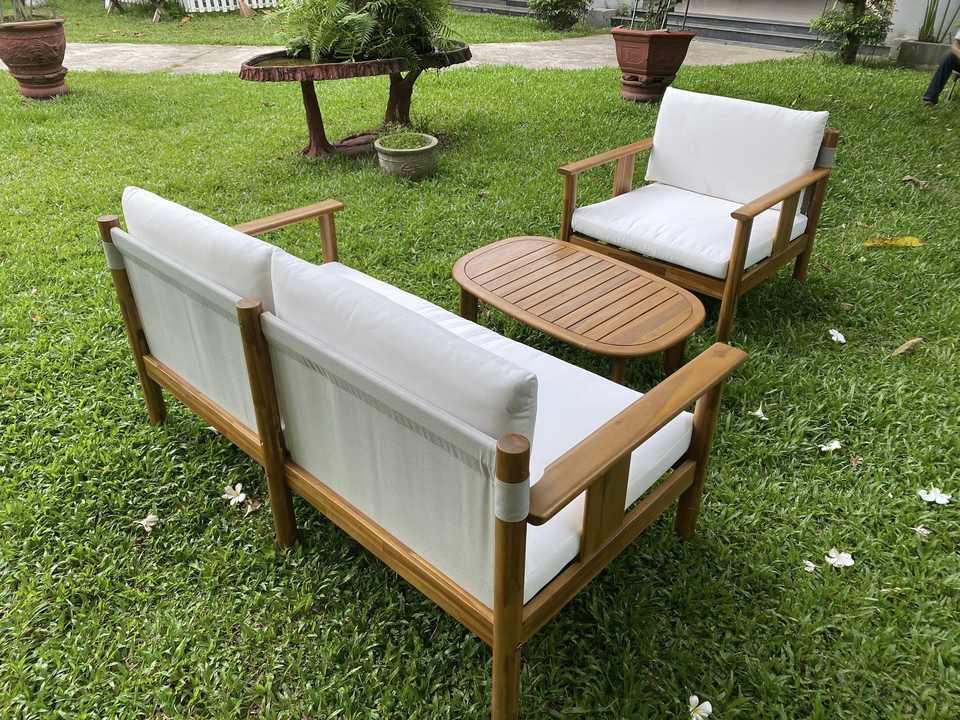 Acacia Solid Wood Outdoor Furniture Comfortable Relaxing Sofa Set with Polyester Cushions