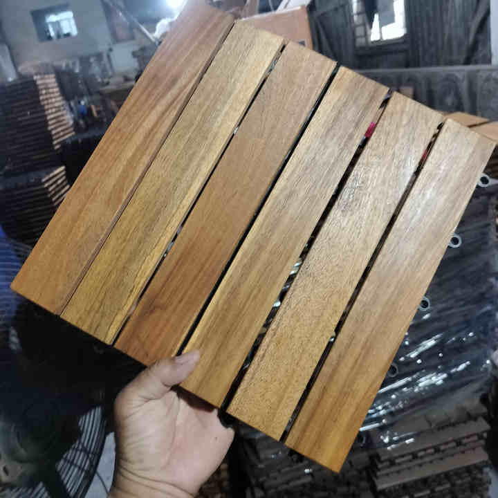 Dalles de terrasse extérieures modernes en WPC Acacia, système clic, brossées, imperméables et antidérapantes, 300x300mm pour jardin