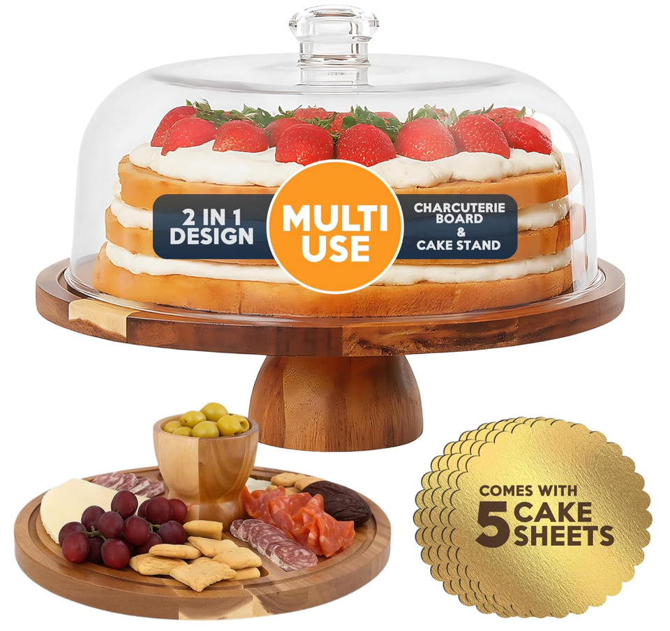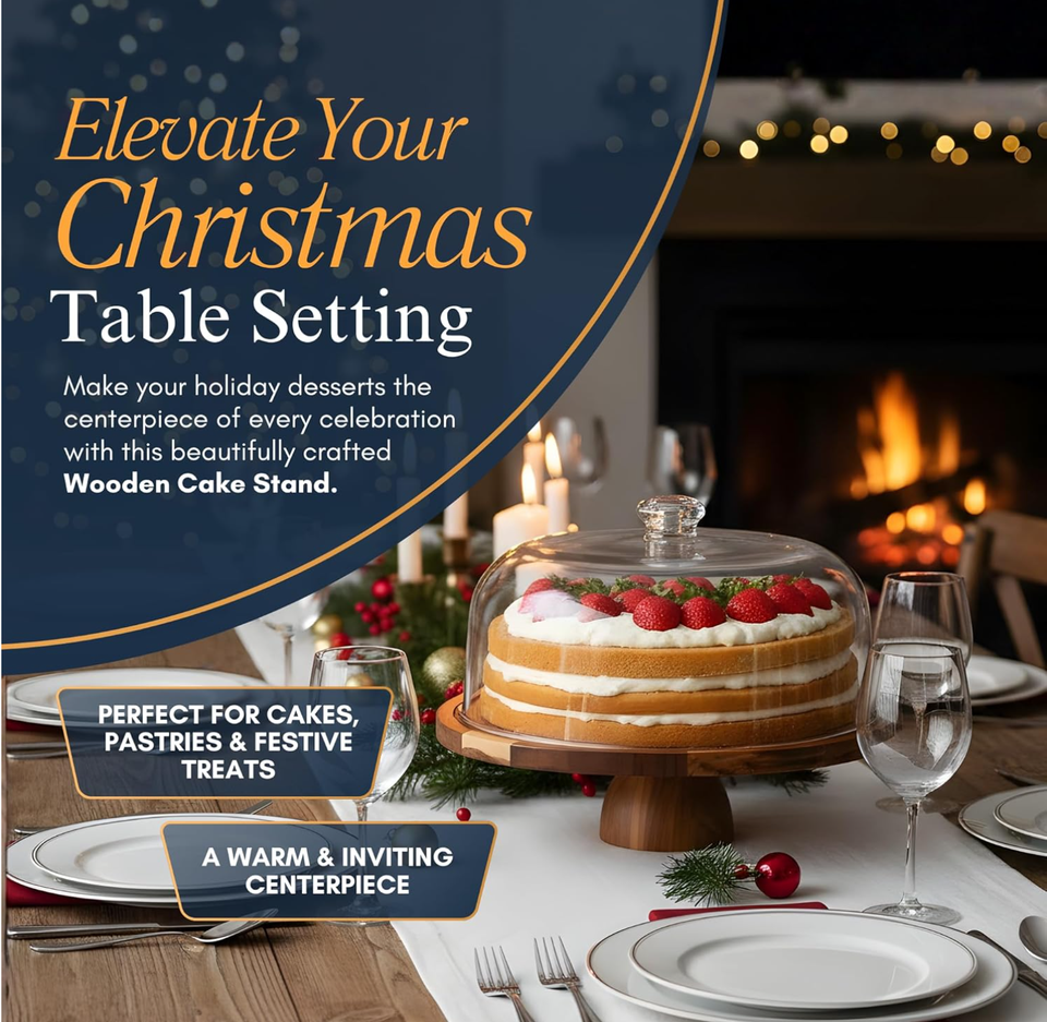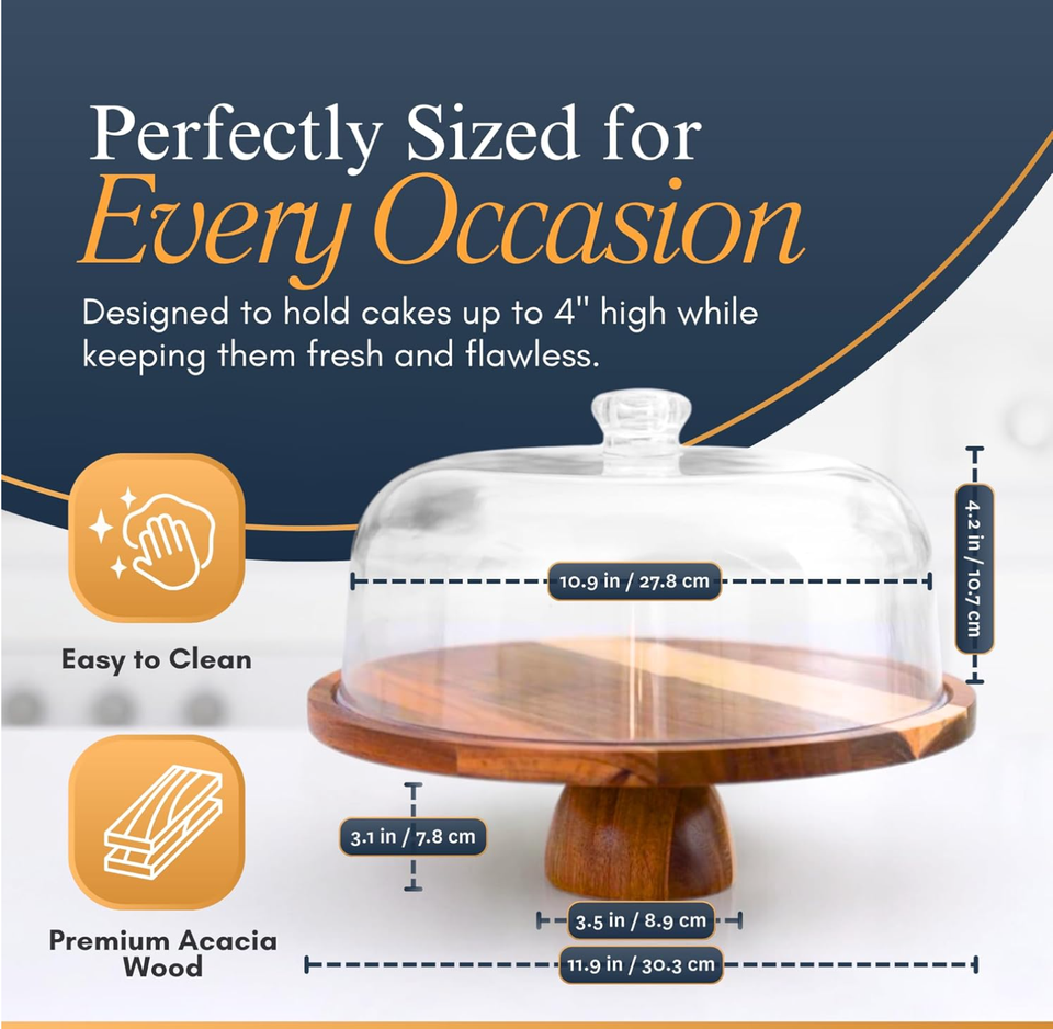 Support à gâteau rotatif rond en bois d'acacia de 12 pouces avec couvercle, ensemble de présentation de table à dessert 2 en 1, plateau à gâteau, support de rangement