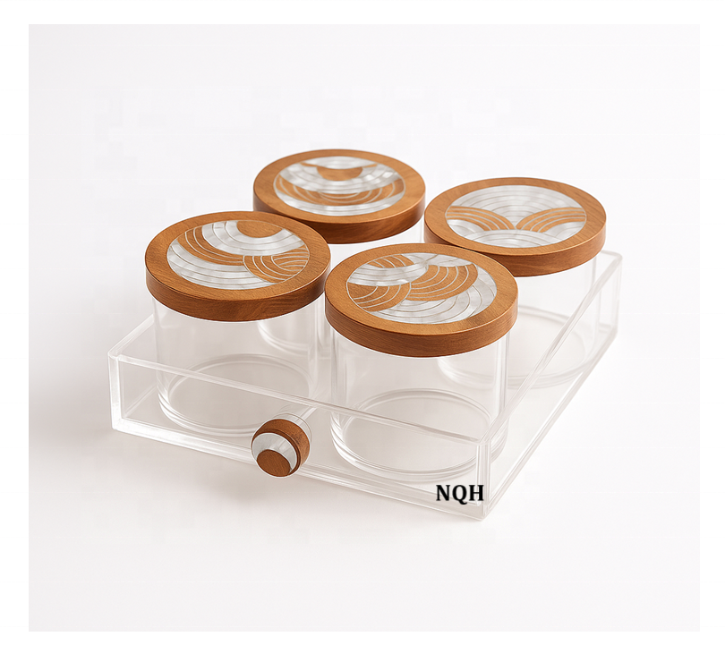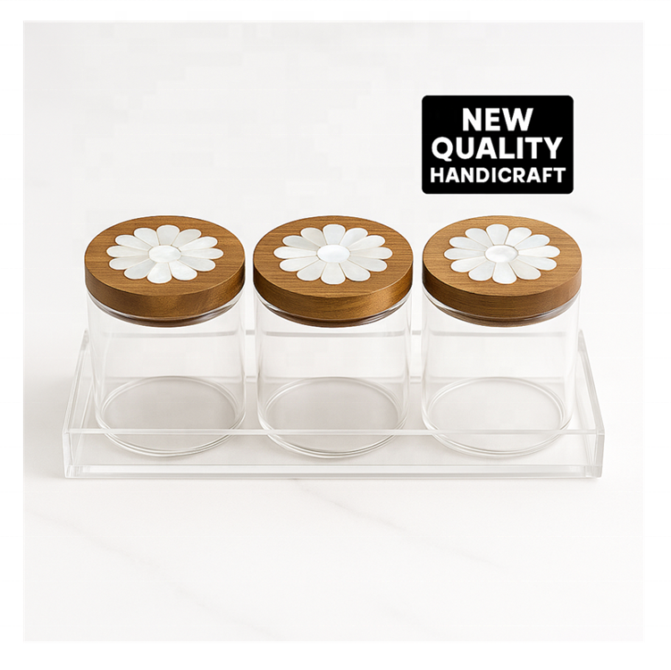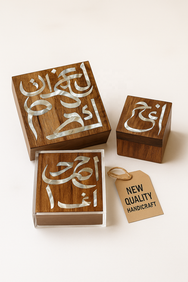 Boîte de rangement carrée en bois d'acacia et acrylique avec couvercle transparent, lot de 3, organisateur de bijoux et de fruits secs fait main, cadeau du Ramadan