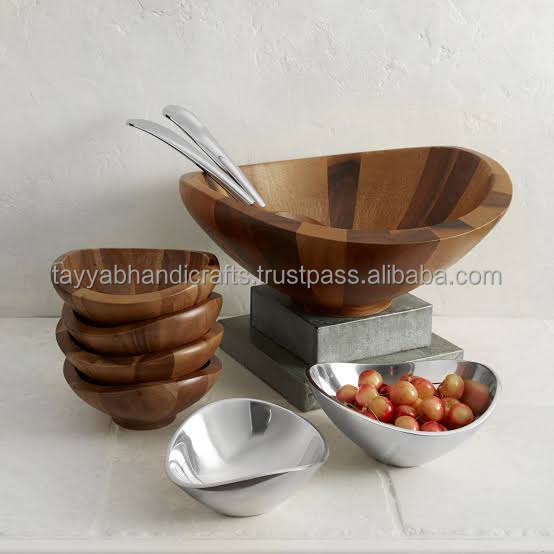 Acacia Wood Eco-Friendly Yuan Bao Shape Splicing Salad Bowl for Soup and Salad from India