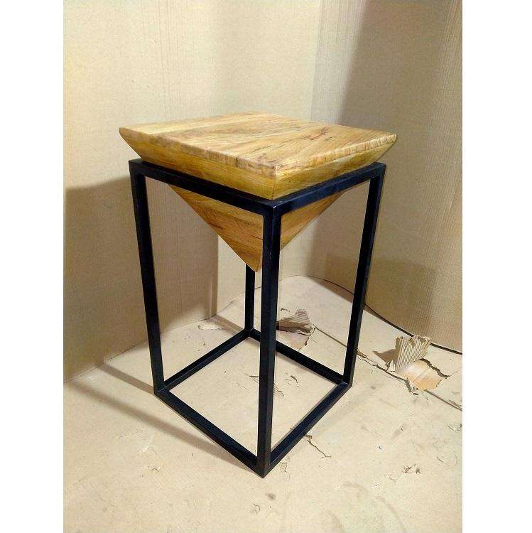 Table d'appoint en bois d'acacia avec structure en métal massif, table d'appoint moderne pour salon, bureau et mobilier de maison