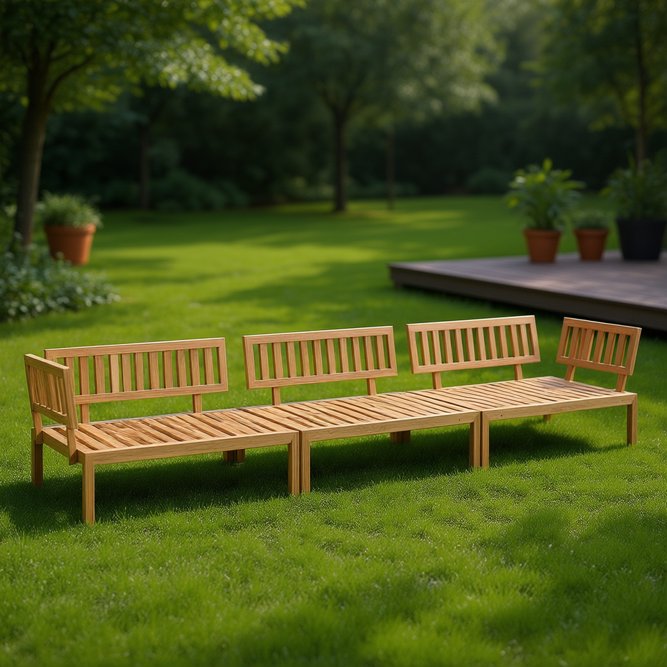 Ensemble de canapés de jardin modulaires en bois d'acacia, mobilier d'extérieur, design minimaliste, finition naturelle