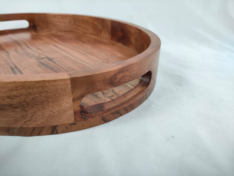 Acacia Wood Oval Handmade Polished Modern Decorative Tray Handle Custom Size for Living Room Coffee Table Bed Breakfast Candle