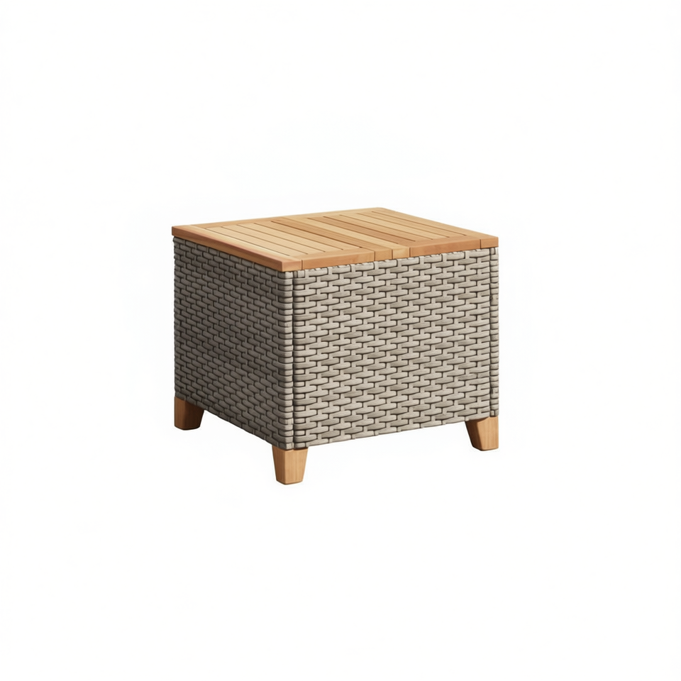 Table de patio en bois d'acacia et polyrotin, 17,7x17,7x14,6, gris, table d'extérieur, mobilier contemporain et durable