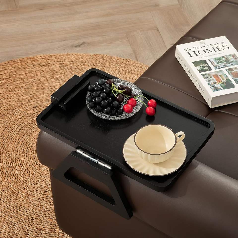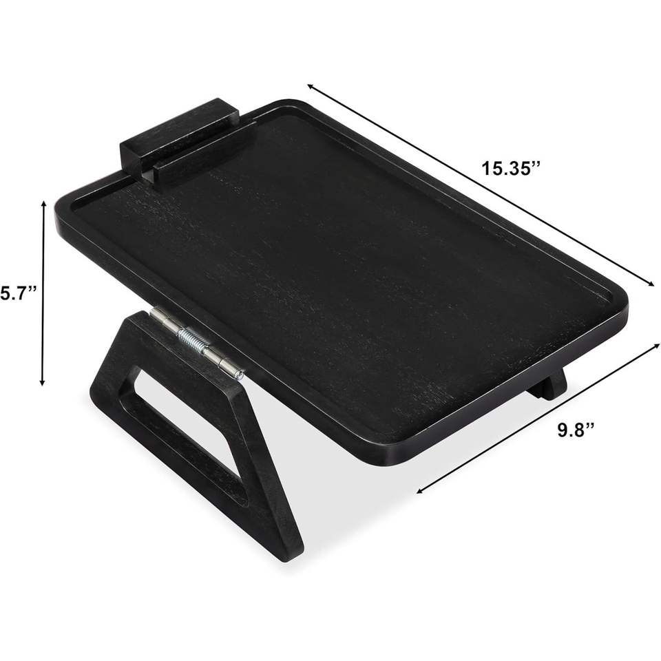 Table d'appoint rectangulaire en bois d'acacia 39 cm (D) x 25 cm (L) x 14,5 cm (H) avec accoudoir pliable et organisateur, plateau de rangement pour canapé et télévision