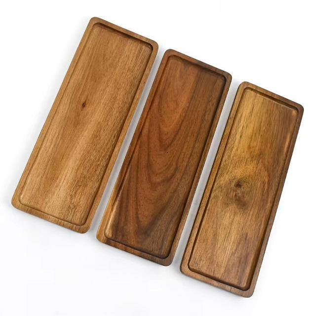 Plateau de service rectangulaire en bois d'acacia, écologique, poli, pour aliments, fruits, desserts, cuisine, hôtel, restaurant, vaisselle