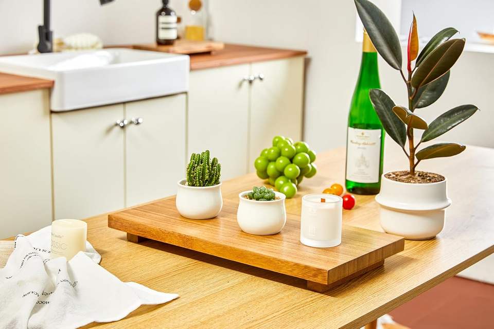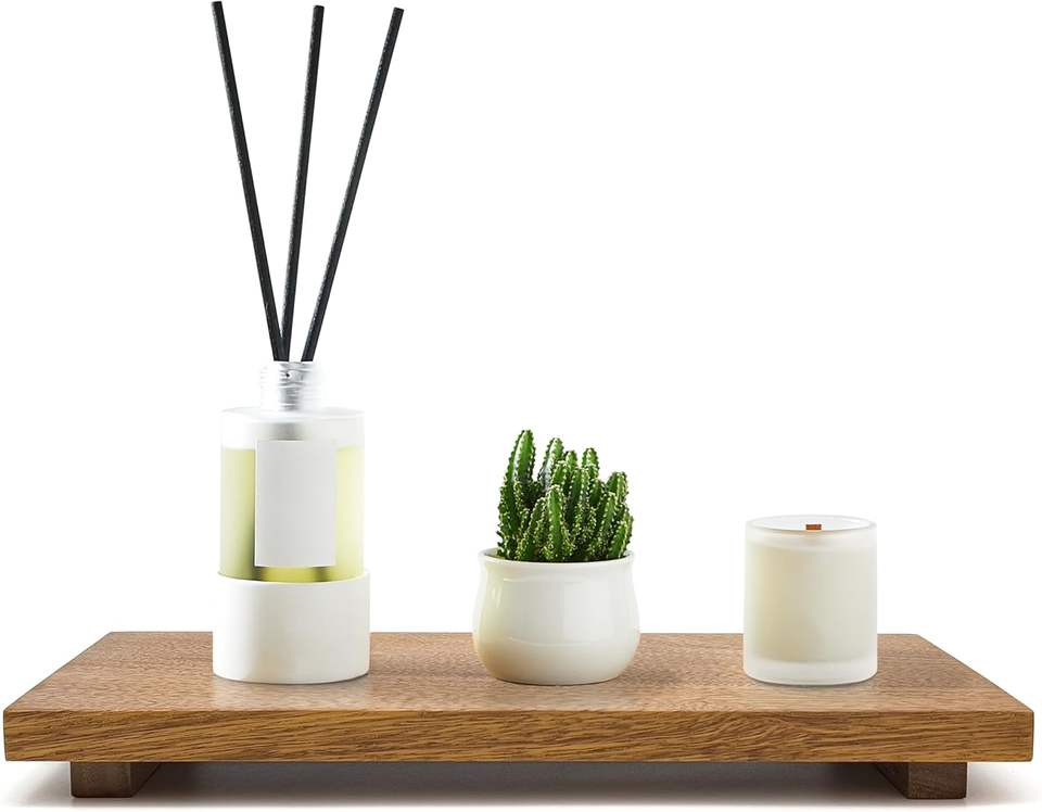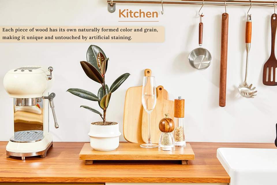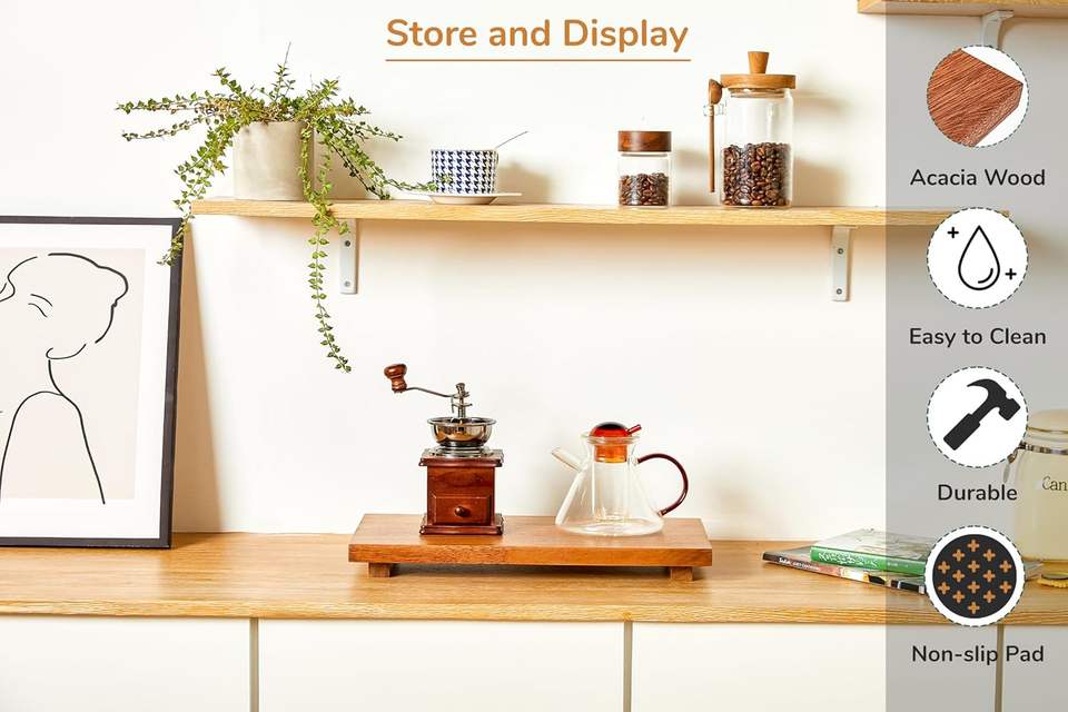Support surélevé en bois d'acacia – Présentoir en bois style ferme pour la décoration de cuisine et de salle de bain, support pour plantes, porte-bijoux