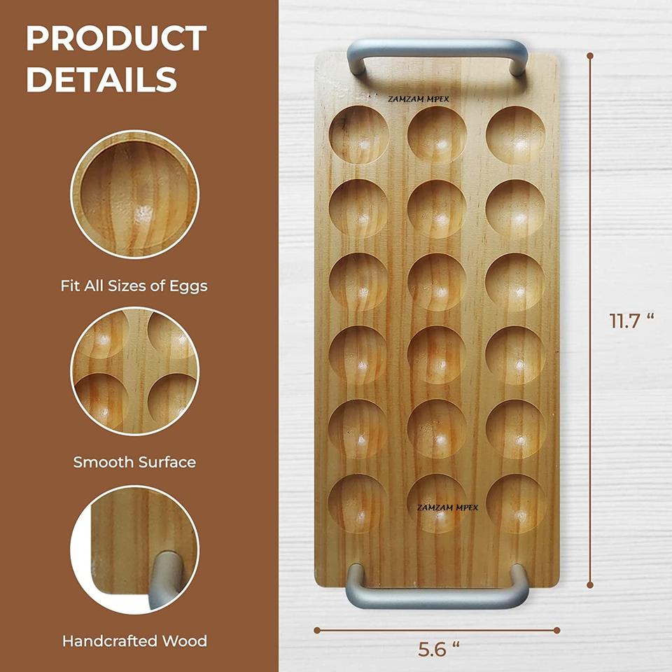 Porte-œufs rustique en bois d'acacia avec poignée en acier Plateau de rangement de 18 œufs pour comptoir de cuisine et décor de ferme