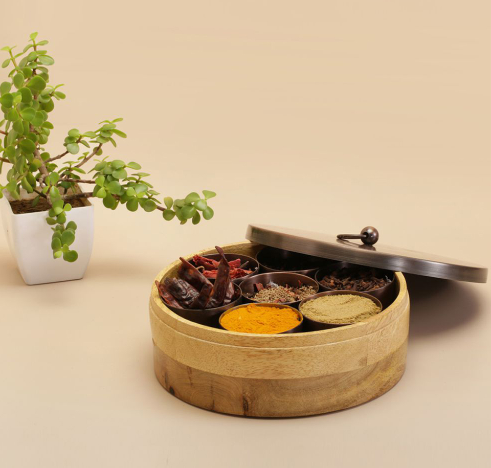 Boîte à épices en bois d'acacia pour comptoir de cuisine, gadgets de cuisine, centre de table à 7 compartiments pour herbes et épices