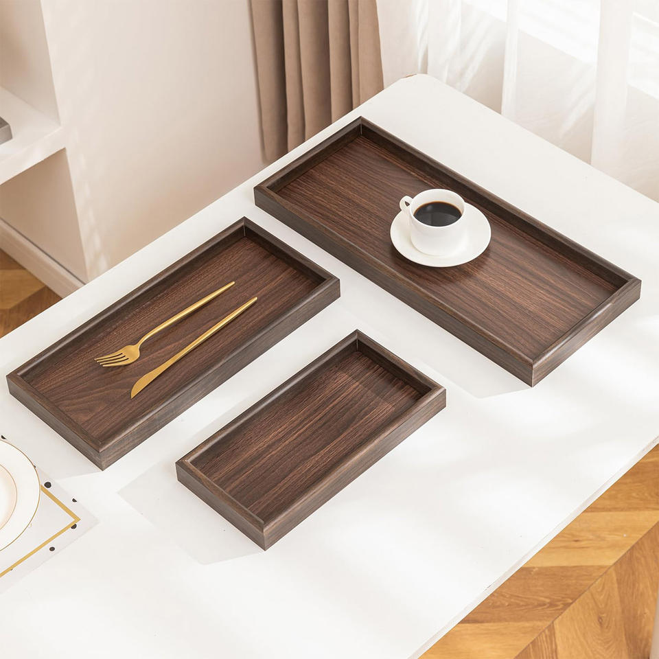 Nom du produit:Plateau de service rectangulaire en bois d'acacia l Set de 2