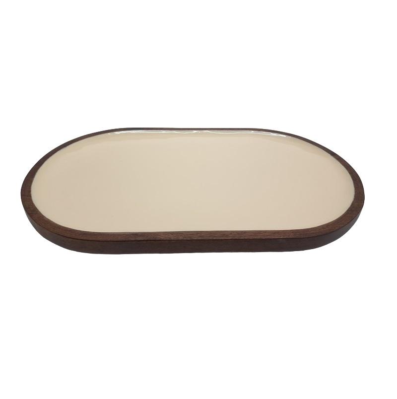 Plateau de service en bois d'acacia de forme ovale pour la maison et les hôtels Plateaux de service de table et de collations faits à la main