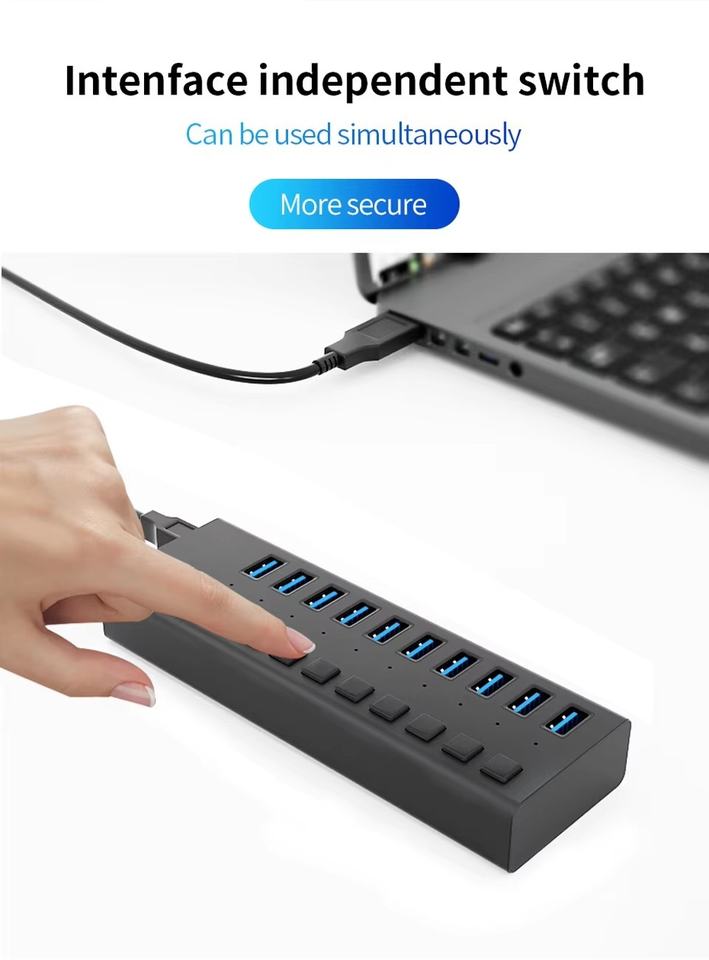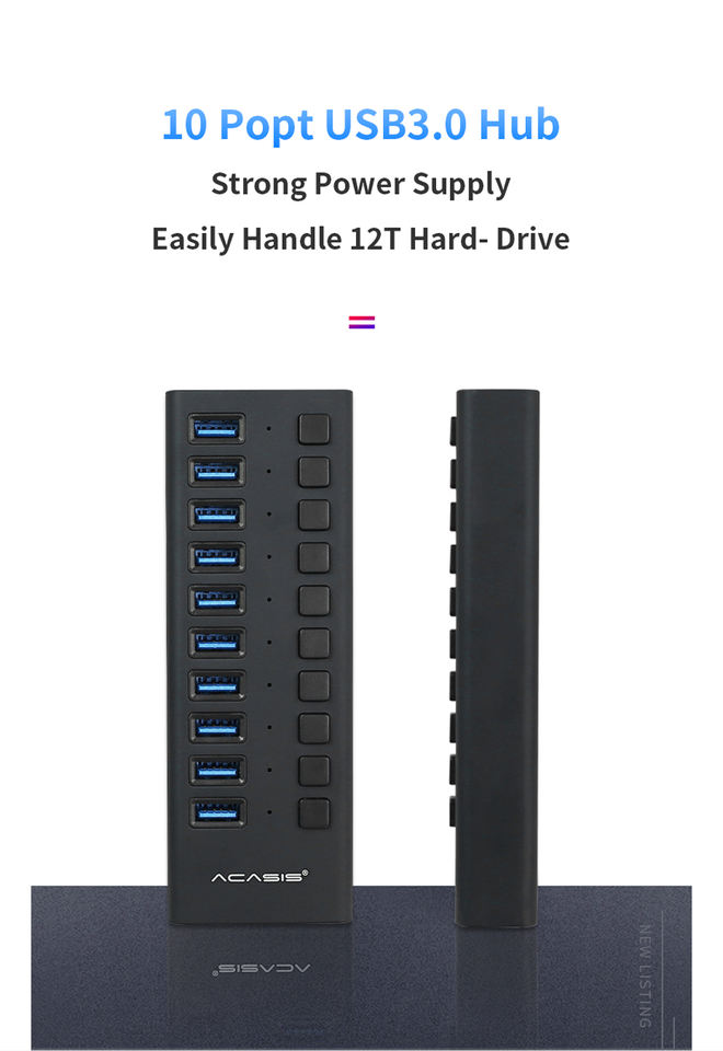 Acasis High Speed 5Gbps Splitter Industrial USB Splitter With Integrated Independent Power Adapter for PC