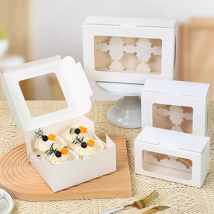 Accepter 4 trous recyclable Cupcake Box Matt Lamination Gaufrage pour célébration de mariage Carton blanc Emballage alimentaire pour bébé