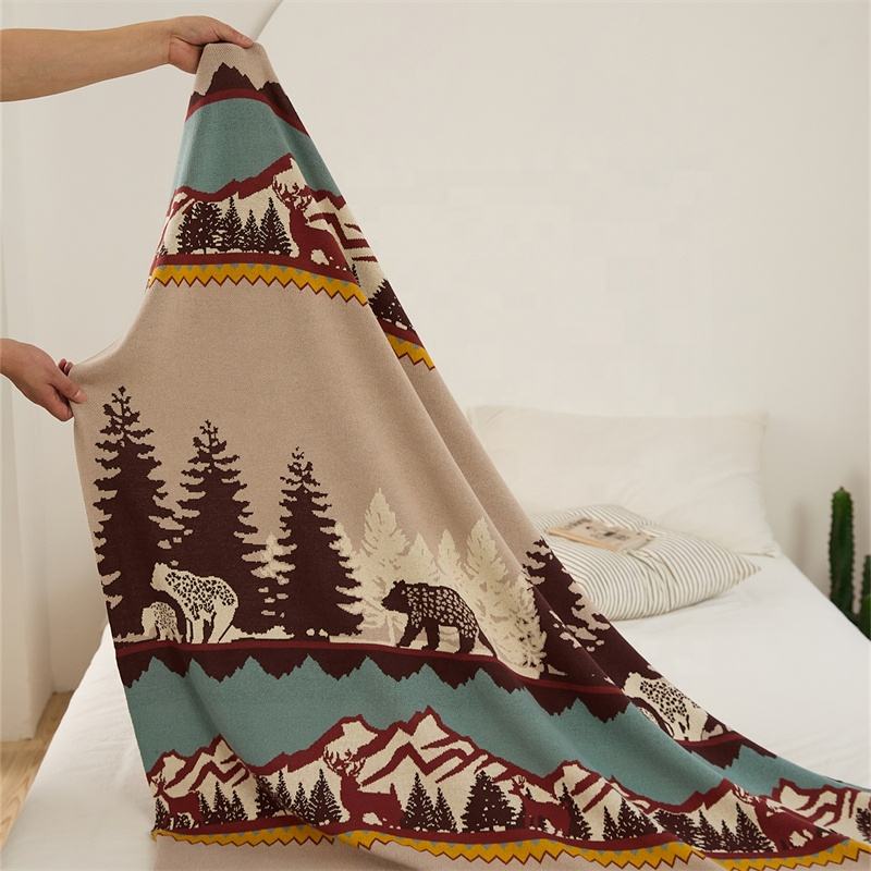 Accepter le motif de couvre-lit en tricot 100% coton personnalisé Couverture tricotée ours forestier pour canapé SEX