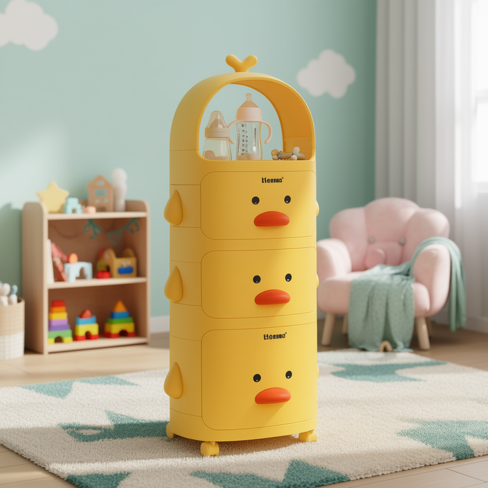 Comercializadora De Bienes Y Servicios Arpevi Sa De Cv Armoire en plastique pour enfants à 3 tiroirs avec roulettes pour le rangement des bébés, design de dessin animé
