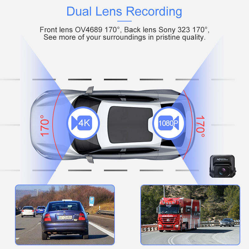 Accessoire Car Mini 2 "4K 2160P/1080P FHD Dash Cam pour voiture Caméra 170 degrés pour enregistrer de la vidéo WiFi GPS Vision de nuit Caméra Dash 4g