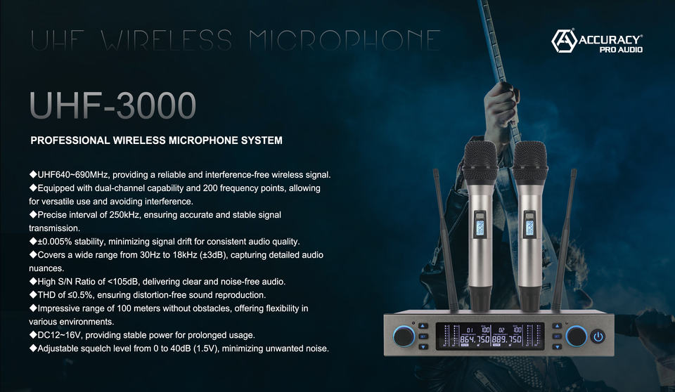 Système de microphone sans fil professionnel UHF-3000 Accuracy Pro Audio, microphone portable UHF sans fil