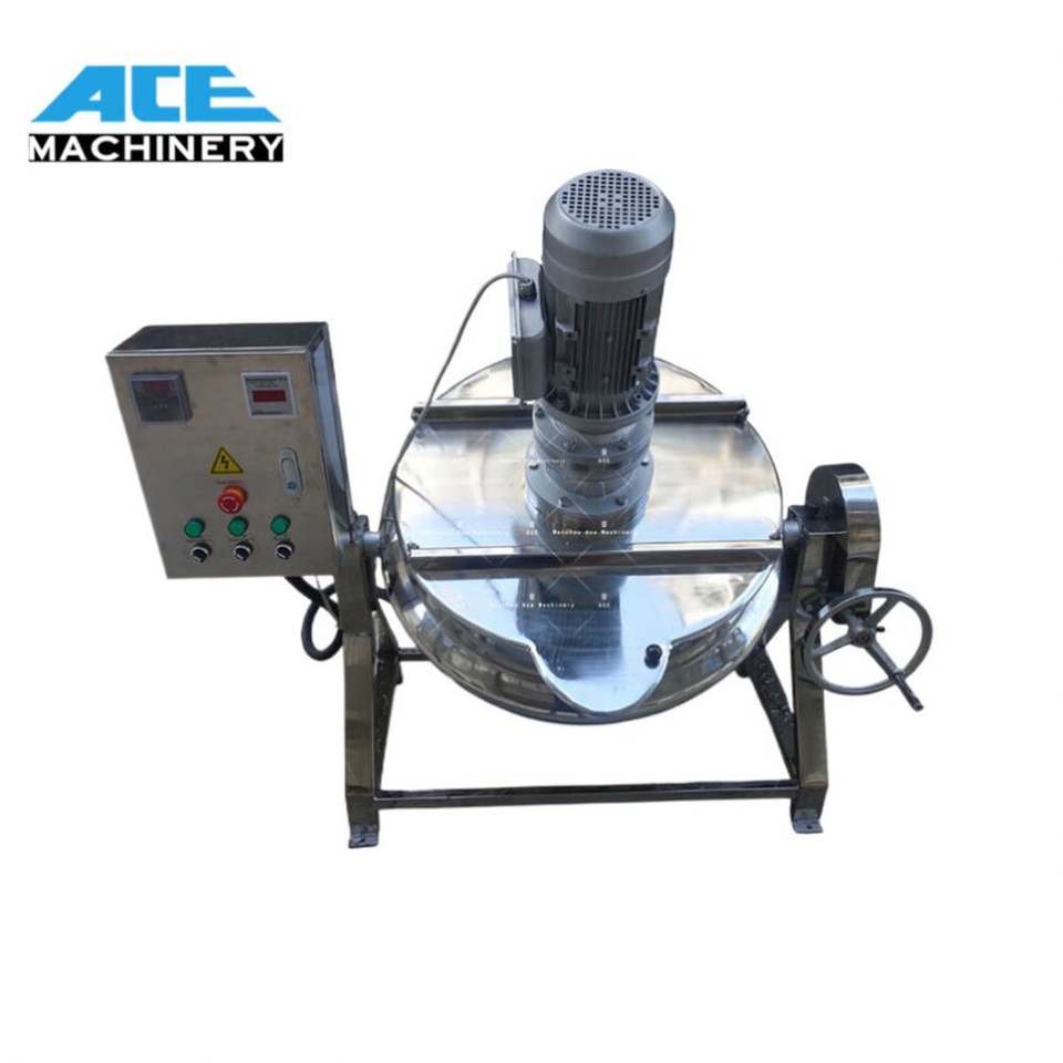 Marmite de cuisson industrielle électrique à gaz Ace 100-500L en acier inoxydable, machine à bouilloire à double enveloppe pour la cuisson de confiture, de sauce et de pâte